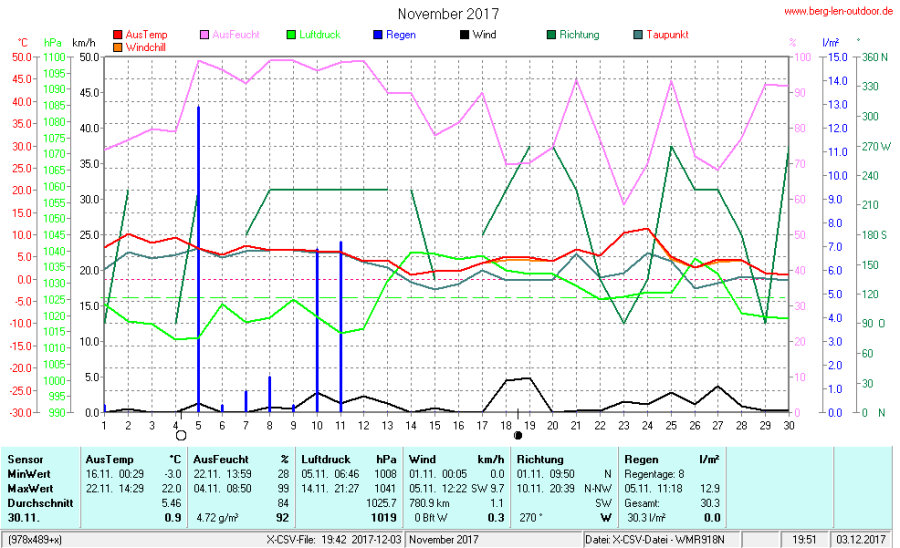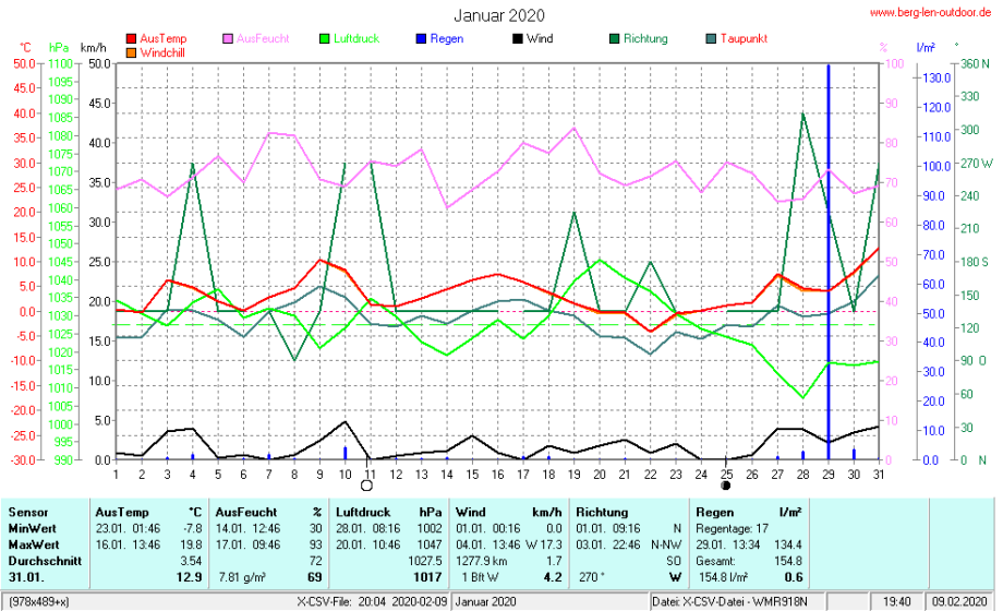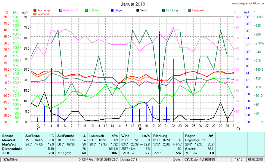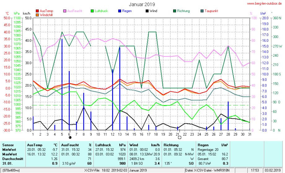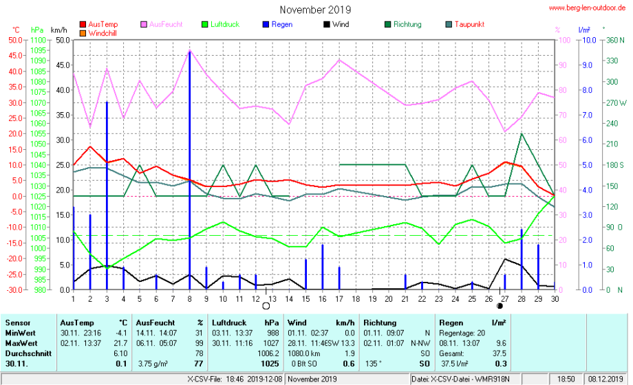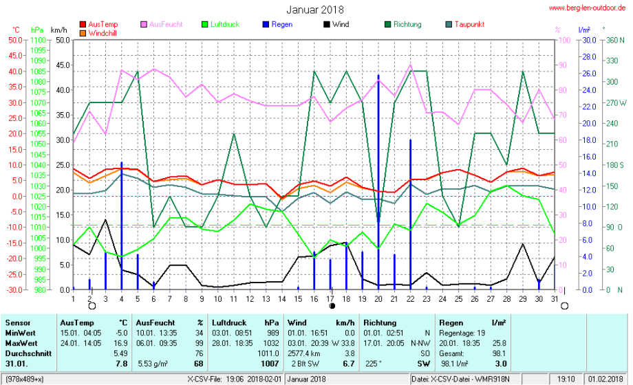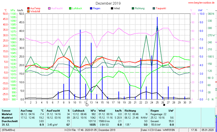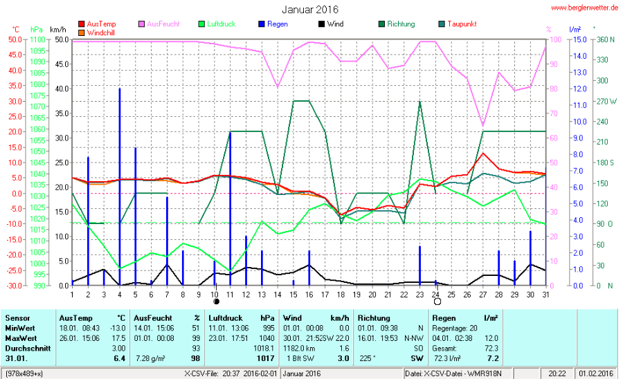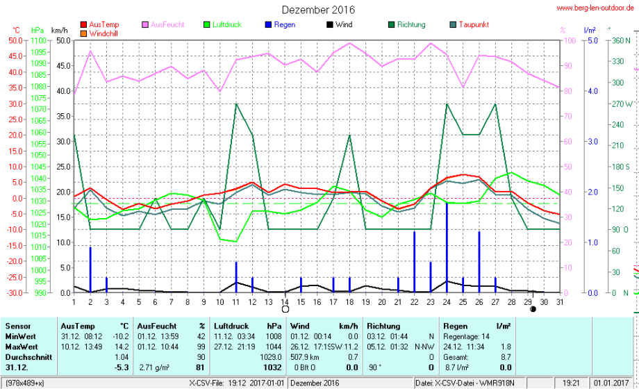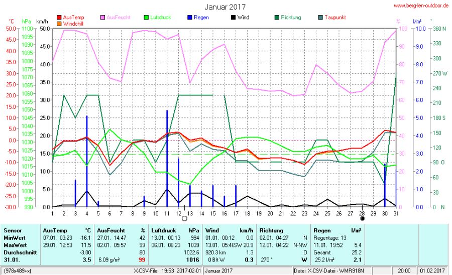 Hier findet ihr die Archivdaten des laufenden Jahres meiner Wetterstation Berglenwetter. Wenn ihr ältere Daten benötigt einfach per Mail bei mir melden. Meine Aufzeichnungen gehen bis zum April 2002 zurück.