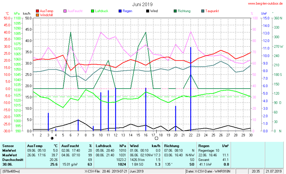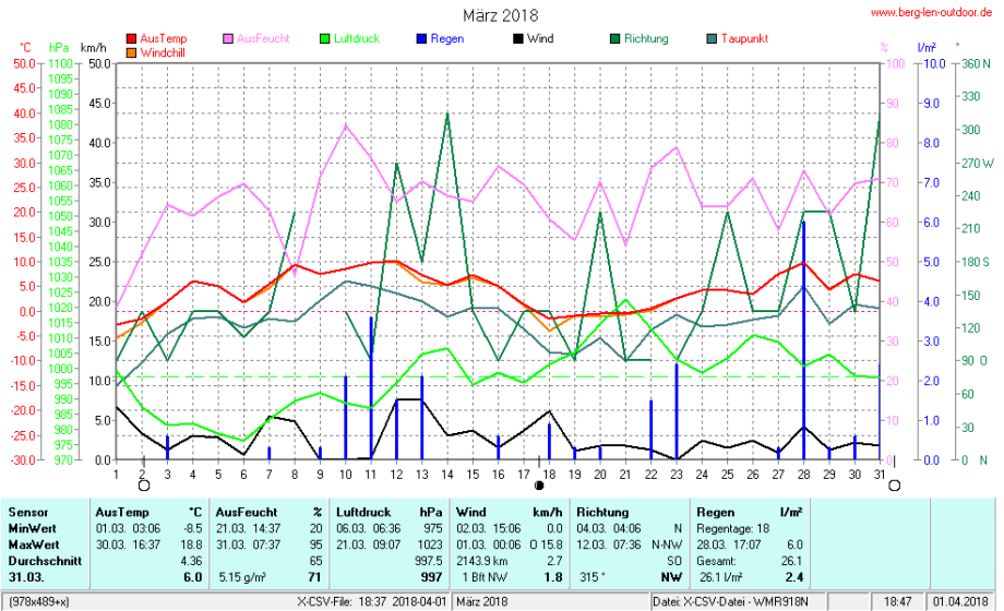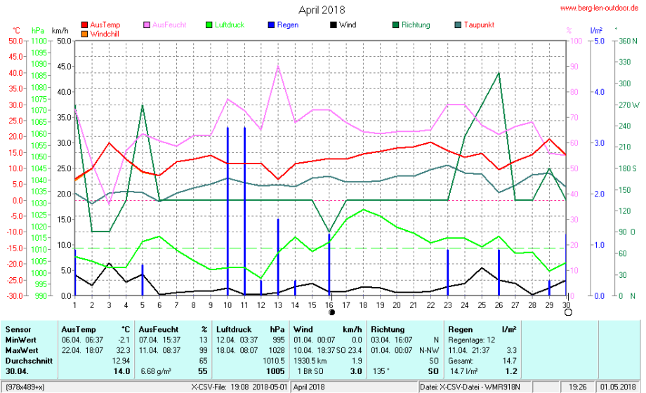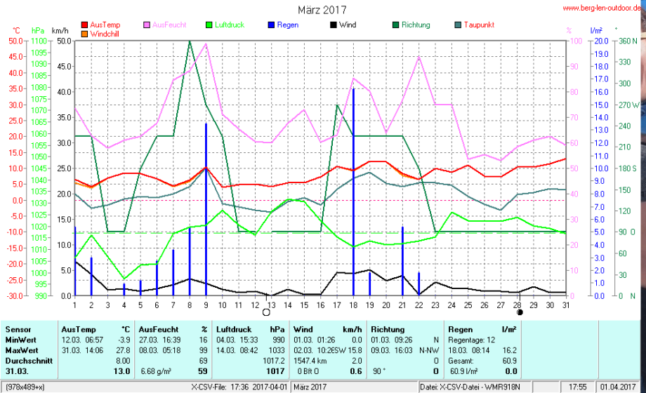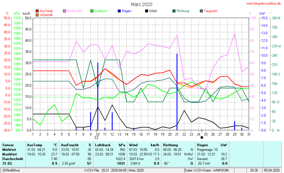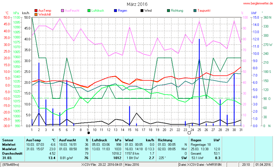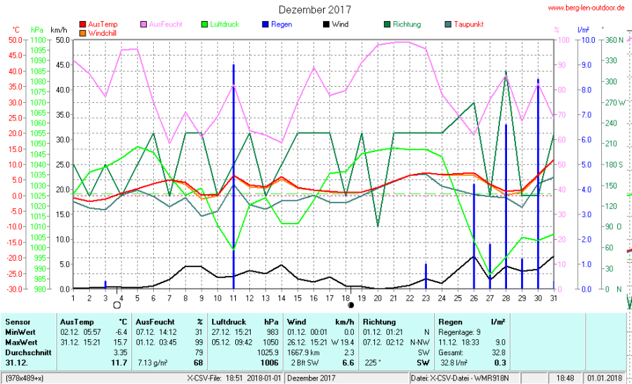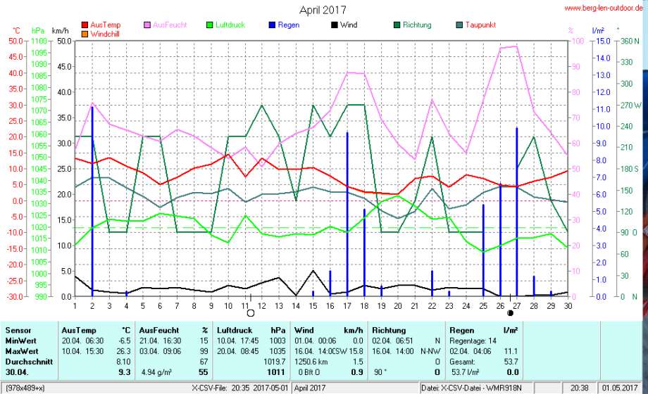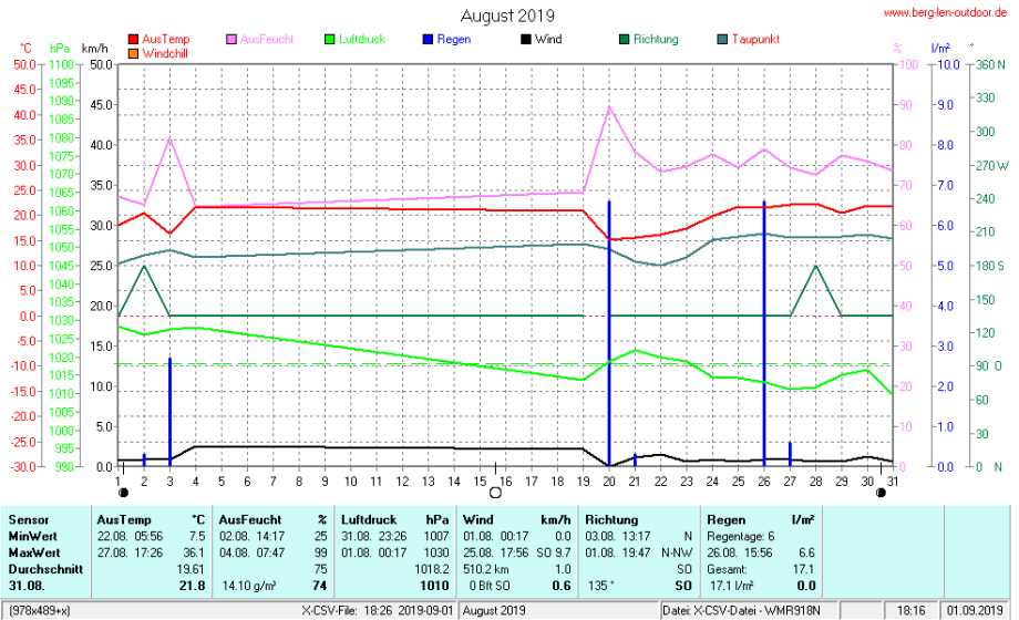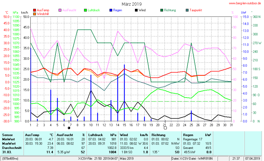 Hier findet ihr die Archivdaten des laufenden Jahres meiner Wetterstation Berglenwetter. Wenn ihr ältere Daten benötigt einfach per Mail bei mir melden. Meine Aufzeichnungen gehen bis zum April 2002 zurück.