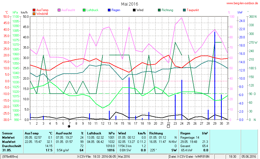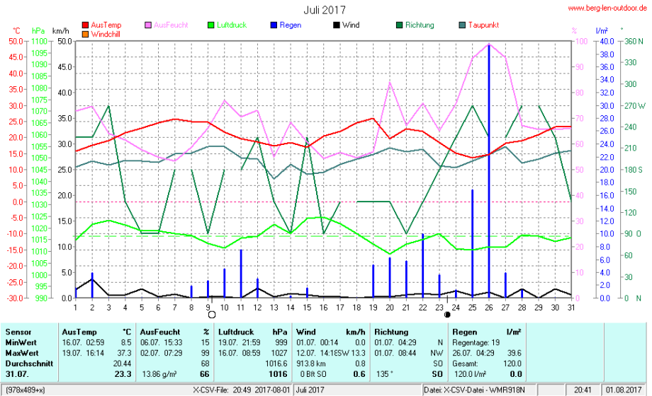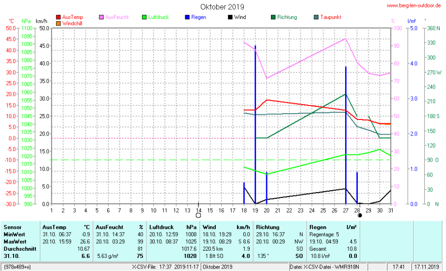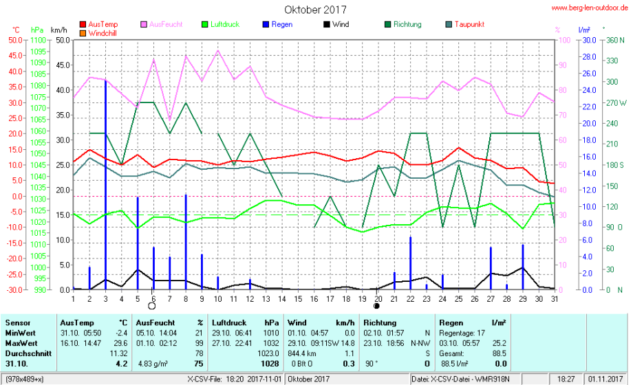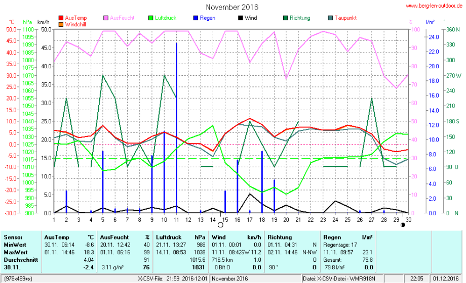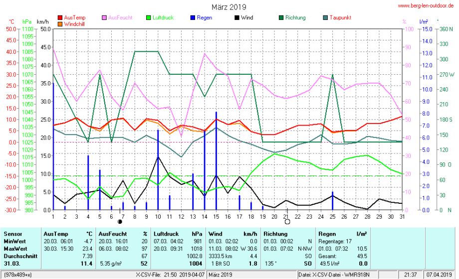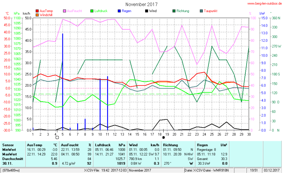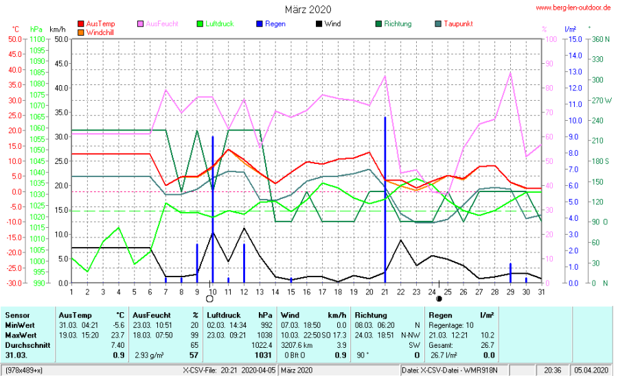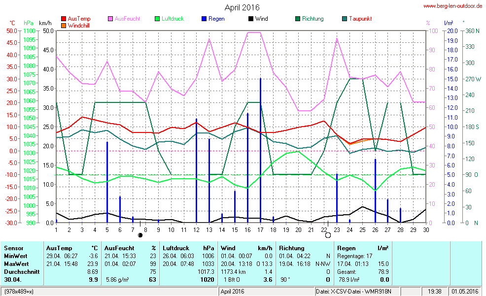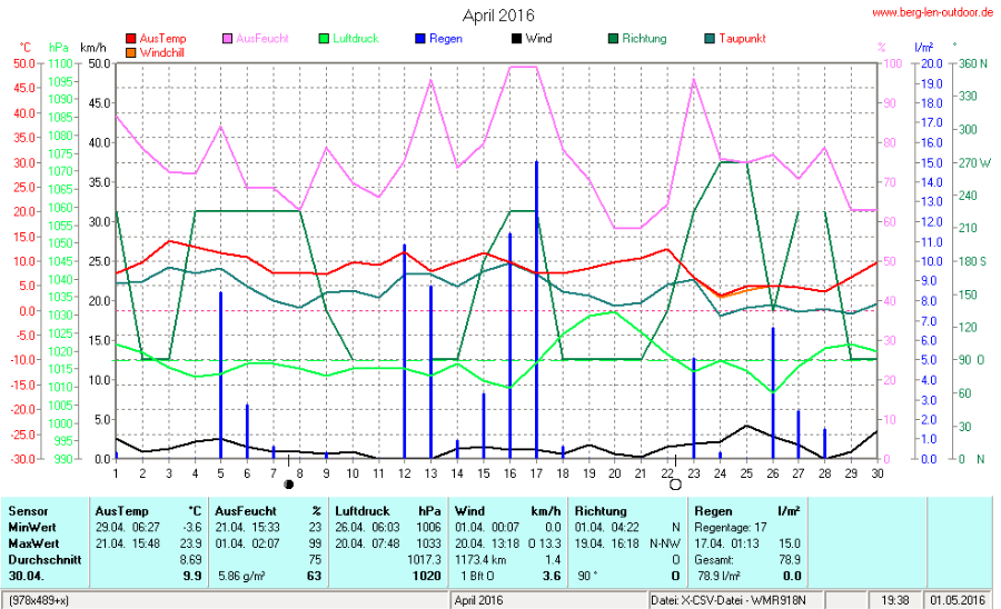 Hier findet ihr die Archivdaten des laufenden Jahres meiner Wetterstation Berglenwetter. Wenn ihr ältere Daten benötigt einfach per Mail bei mir melden. Meine Aufzeichnungen gehen bis zum April 2002 zurück.