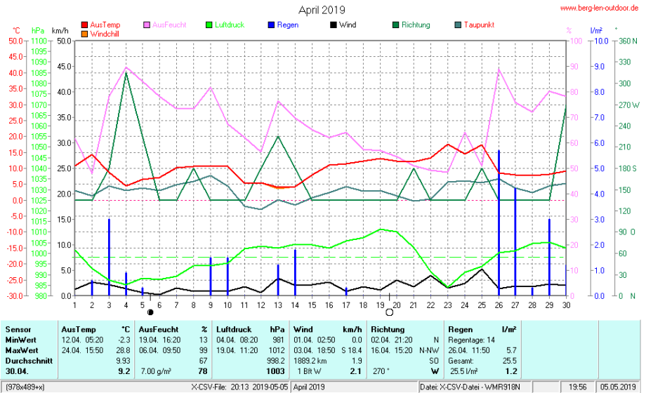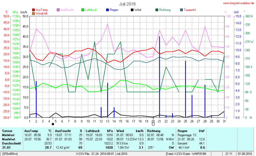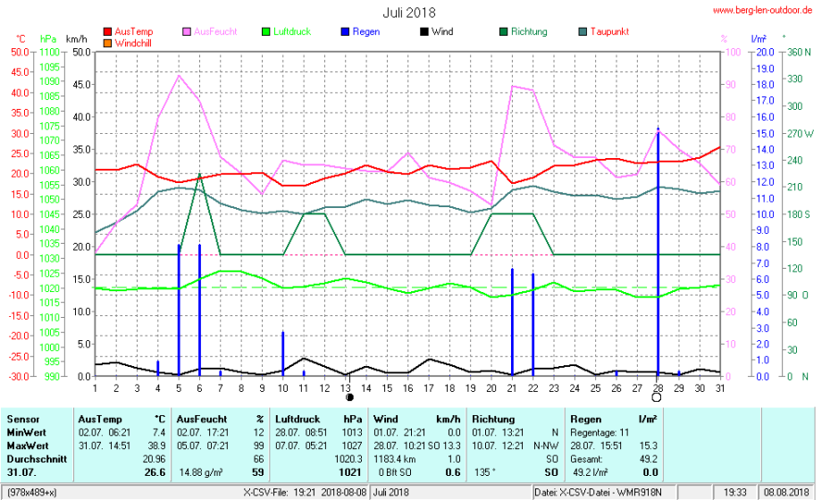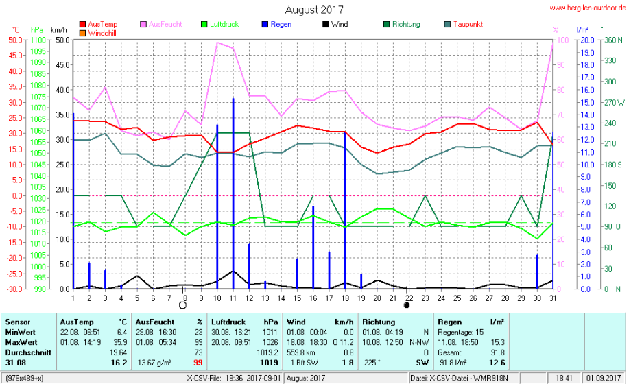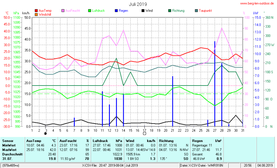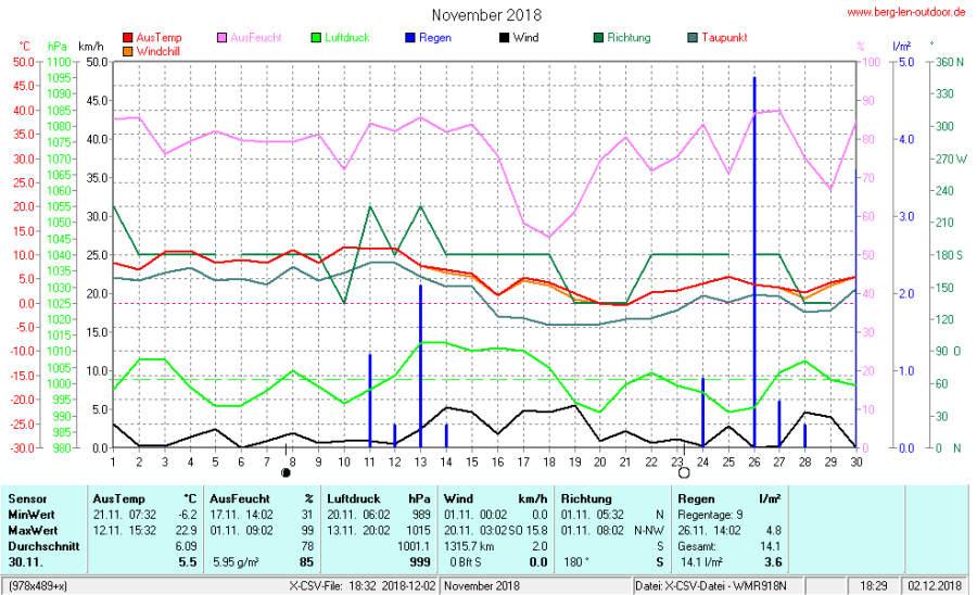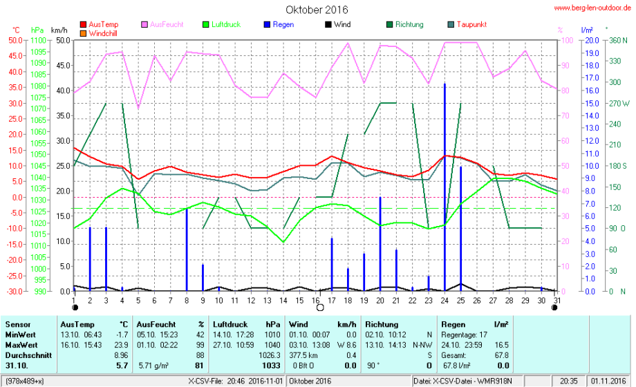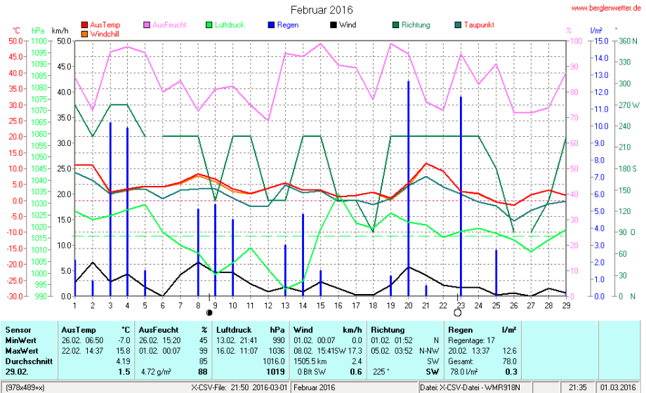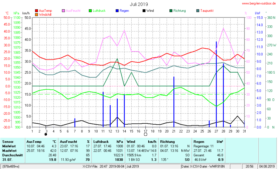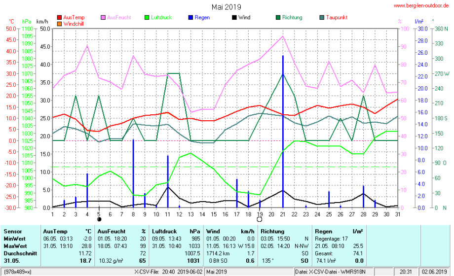 Hier findet ihr die Archivdaten des laufenden Jahres meiner Wetterstation Berglenwetter. Wenn ihr ältere Daten benötigt einfach per Mail bei mir melden. Meine Aufzeichnungen gehen bis zum April 2002 zurück.