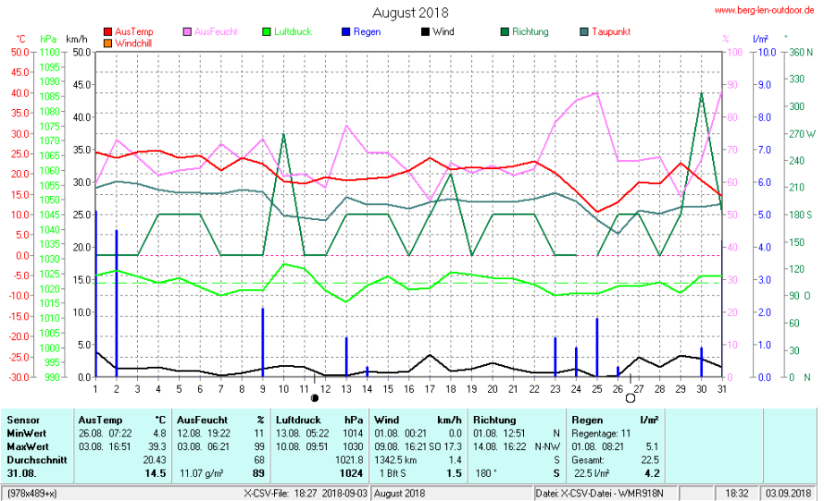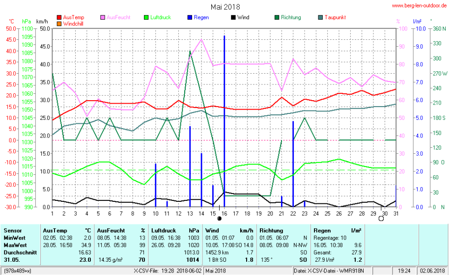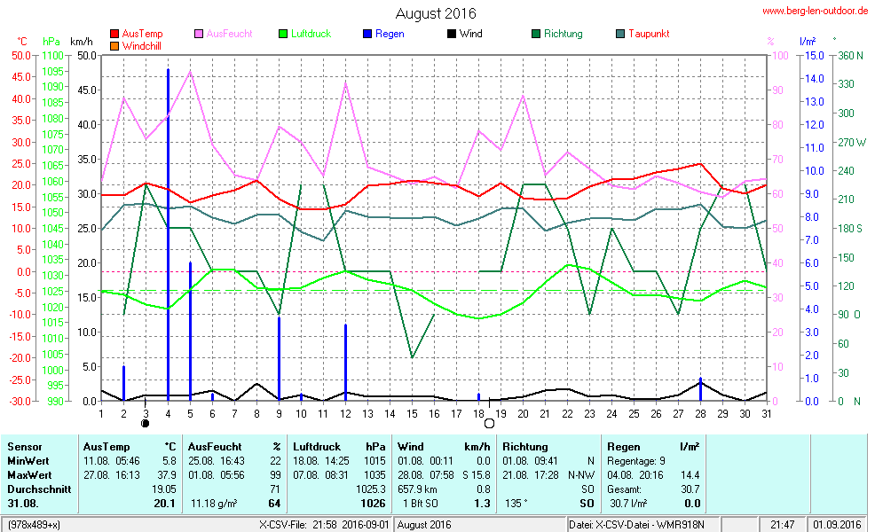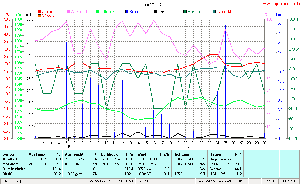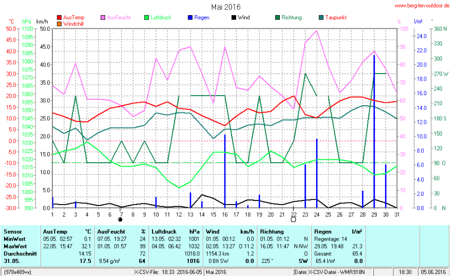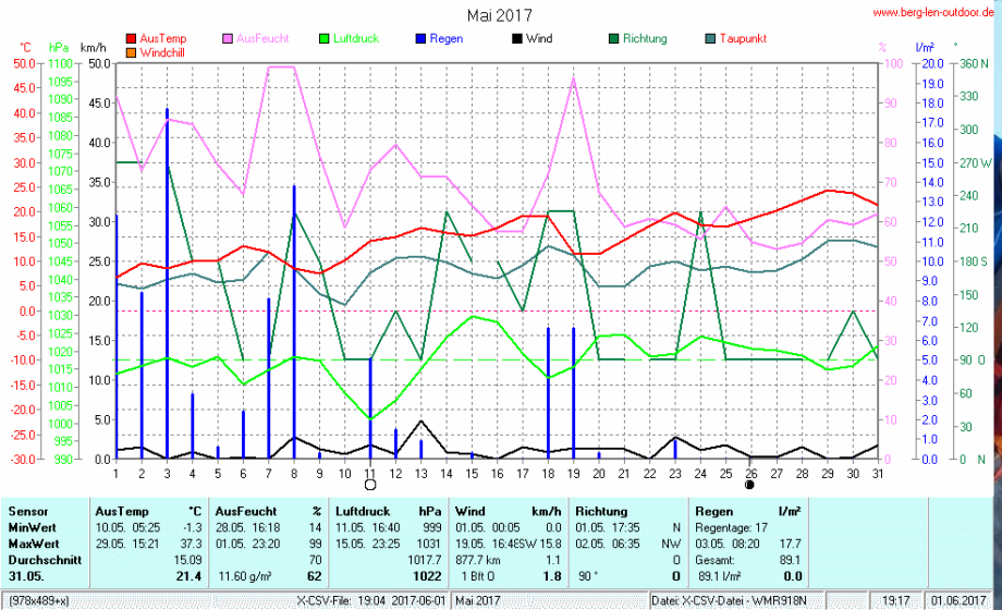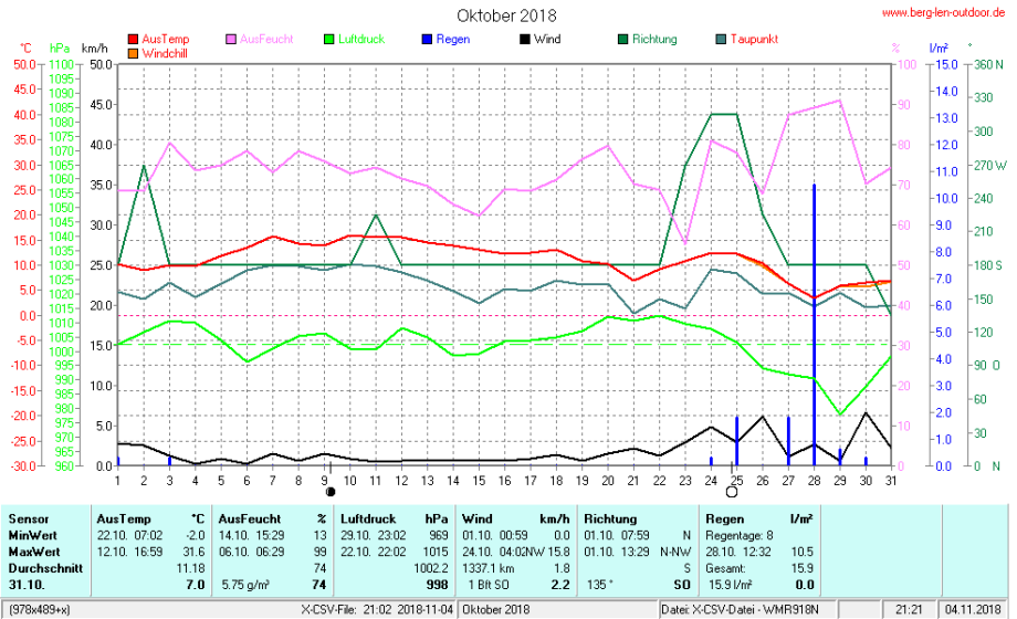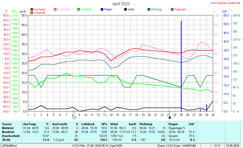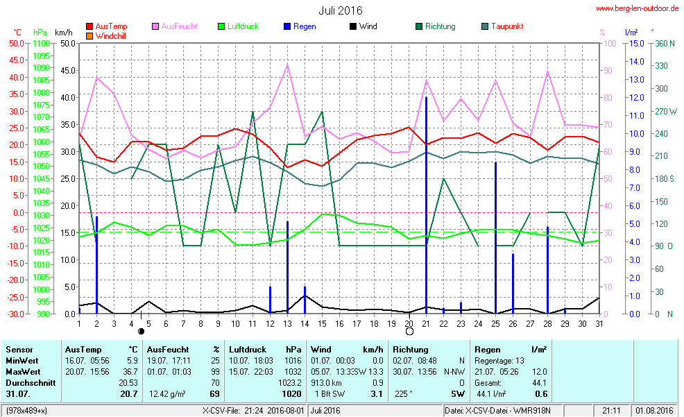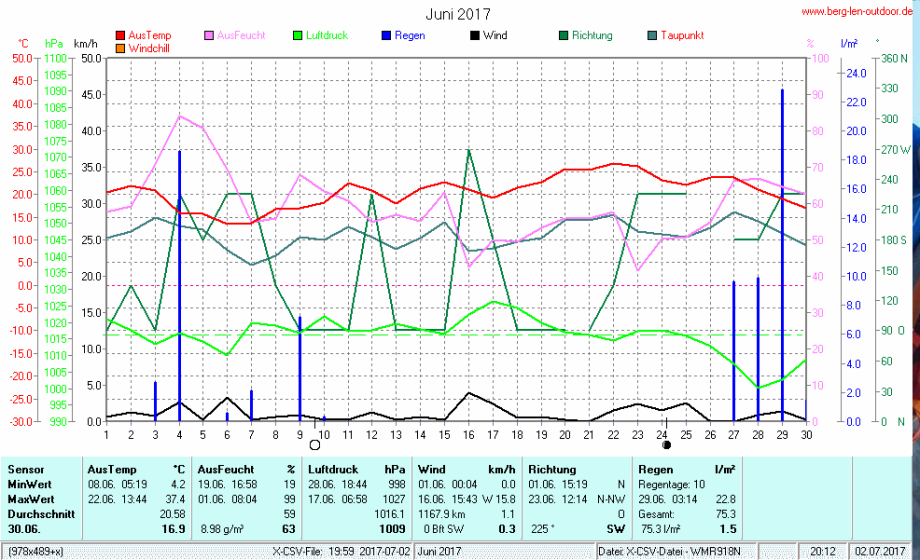 Hier findet ihr die Archivdaten des laufenden Jahres meiner Wetterstation Berglenwetter. Wenn ihr ältere Daten benötigt einfach per Mail bei mir melden. Meine Aufzeichnungen gehen bis zum April 2002 zurück.