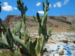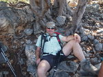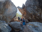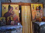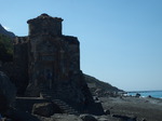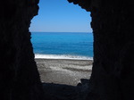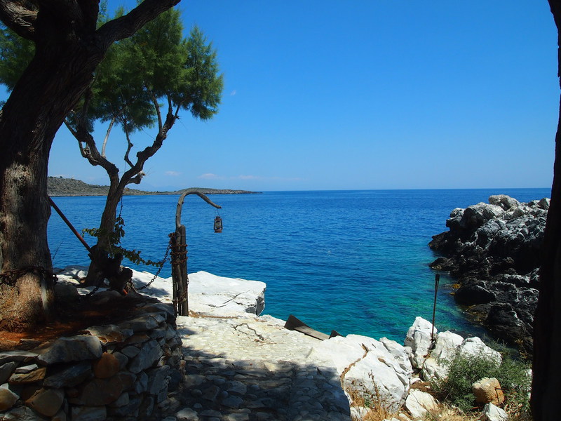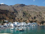 In Agia Roumeli halten wir uns links und laufen durch das Dorf in Richtung Küste. Am Anfang müssen wir uns durch losen und tiefen Küstensand wühlen. Das macht das Gehen nicht einfacher und wir kommen bereits jetzt ganz schön ins Schwitzen. Zum Glück hört dieser Wegabschnitt auf Sand bald auf und wir gehen etwas oberhalb auf einem steinigen Pfad weiter. Pinienwälder spenden uns noch Schatten. Nach knapp 2 Stunden erreichen wir die steinerne Kapelle Agios Pavlos, die direkt am Strand steht und aus dem 11.Jahrhundert stammt. Im Schatten der Kapelle gönnen wir uns eine Rast. Wichtig: Bei dieser Tour viel Getränke mitnehmen, da es vor der Taverne an der Marmara Bay keine Nachtank-Möglichkeit gibt. Von Agios Pavlos aus geht es wieder leicht den Berg hoch und der Pfad führt uns immer oberhalb des Strandes an der Küste entlang weiter. An der Weggabelung im Wald gehen wir geradeaus, auf dem E-4, weiter. Die Tiefblicke sind faszinierend - das Meer schimmert blau und ist richtig klar. Schattige Wegabschnitte wechseln sich mit sonnigen ab - wir sind ganz schön am Schwitzen. Nach 4:45 Stunden (incl. Pausen) kommt die Bucht von Marmara Bay in Sicht. Wir steigen den steinigen Pfad hinab zur Taverne. Nun haben wir uns eine längere Rast verdient. Bei einem frisch gepressten Orangensaft und kretischen Spezialitäten kommen die Kräfte wieder zurück. In der Bucht Marmara Bay besteht die Möglichkeit zu baden. Ein kleiner, aber sehr schöner Kiesstrand lädt zum Schwimmen ein. Wer nun bereits genug von der Lauferei hat, fährt mit dem sog. Taxiboot direkt nach Loutro weiter. Wir wählen aber die "härtere" Variante und gehen zu Fuß weiter. Vorbei am Strand führt unser Weg abermals parallel zur Küste nach Lykos und Finikas. Der E4 führt uns an bizarren Felsformationen vorbei und lustigerweise teilweise direkt durch Tavernen hindurch. Danach wartet der letzte Anstieg für heute auf uns. Ungeschützt, in der nun prallen Sonne, geht es hoch. Oben angekommen sehen wir bereits das traumhaft gelegene Loutro. Das Dorf liegt direkt in einer kleinen Bucht und ist nur zu Fuß oder mit dem Schiff erreichbar. Die Häuser sind weiß gekalkt mit blauen Türen und Fenster und schmiegen sich an die Felsen an. So stellt man sich Kreta immer vor - eine wahre Idylle. Nach ein paar Minuten haben wir unser heutiges Etappenziel erreicht und legen unsere Füße für heute endgültig hoch.