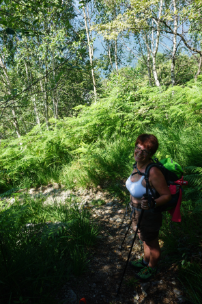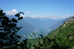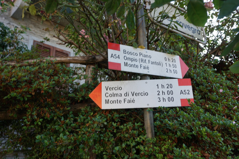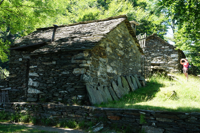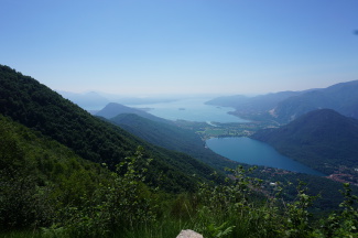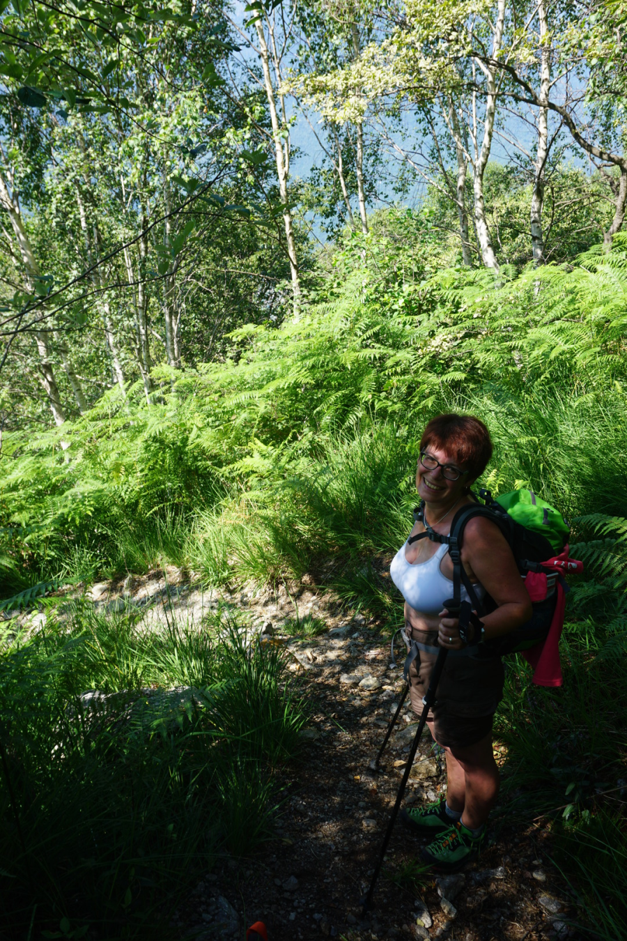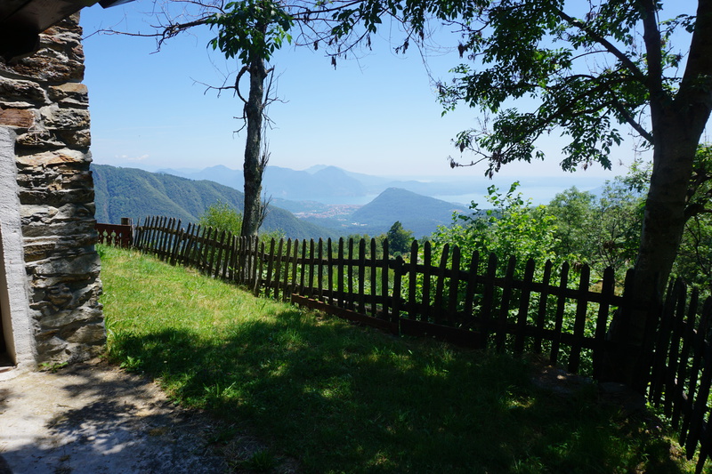 Wir starten am Parkplatz gegenüber dem Campingplatz Lago della Fate und laufen ca. 100 m in Richtung Mergozzo. Gegenüber dem Ristorante "La Quartina" zweigt die Straße rechts hoch nach Bracchio ab. Auf der wenig befahrenen Straße geht es hinauf bis ins Dorf Bracchio (310 m). Auf dem Dorfplatz mit dem Brunnen zweigen wir nach rechts ab in Richtung Kirche. An der Kirche vorbei berauf bis zu einer Abzweigung. Hier ist der Monte Faie links und rechts angeschrieben. Wir wählen die linke Variante über Vercio. Nun geht es im Wald steil bergauf auf einem alten Maultierpfad, einer sog. Mulattiera. Die Aussicht ist genial. Zum Glück ist der Aufstieg komplett im Schatten - sonst müsste man noch mehr schwitzen. Wir kommen an einer verlassenen Hofstelle und der Alpe Vercio (nicht bewirtschaftet) vorbei. Nach ca. 2:30 Stunden ist Vercio (828 m) mit seiner Einsiedelei erreicht. Hier lebt der Einsiedler Don Piero - Einzelheiten könnt ihr der eigenen Homepage entnehmen. Die Sicht vom Kirchlein aus auf den Lago Maggiore ist gigantisch. Wir gehen rechts an der Kirche und einem Brunnen vorbei und dann nicht den Weg nach rechts, sondern direkt über die Wiese hoch zu den Häusern, die weiter oben am Berg zu sehen sind. An dem Brunnen aus Candoglia-Marmor vorbei laufen wir nach rechts in den Wald hinein und folgen dem Holzschild "Faie, Corte Bue". Steil zieht der Bergpfad im Wald nach oben. Das ganze hat etwas von "Urwald-Feeling" - viele Büsche, Farn und Birken. Hinzu kommen die fantastischen Tiefblicke auf den Lago Maggiore, Lago di Mergozzo und ins Val d' Ossola. Nach weiteren 1:30 Stunden kommen wir zu einem Sattel, dem Colma di Vercio (1.259 m). Dort zweigen wir nach rechts ab und folgem dem Schild "Ruspesso Ompio). Nun geht es einige Zeit direkt am Kamm entlang. Wir lassen den Gipfel des Monte Faie (1.352 m) rechts von uns liegen und folgen dem Pfad wieder in den Wald hinein. Wer will kann den kurzen Abstecher auf den Gipfel mitnehmen. Weiter geht es bergab bis zur Alpe Caseracce (1.247 m). Dort nach rechts weiter im Wald nach La Groce (1.110 m). Von den dortigen Steinhäusern hat man einen tollen Blick auf das wilde, bewaldete Val Grande gegenüber. Das Gebiet wurde 1992 zum Nationalpark erklärt und ist das größte Wildnisgebiet der Alpen. Nun geht es weiter bergab zur einzigen Einkehrmöglichkeit der heutigen Tour - dem Rifugio Antonio Fantoli auf der Alpe Ompio. Das kalte Bier und die schmackhafte Polenta haben wir uns, nach der langen Marschzeit, mehr als verdient. Nach ein paar Minuten kommen wir auf die Fahrstraße. Dieser folgen wir nach unten und nehmen immer wieder die Abkürzungen zwischen den Kurven. Über Ruspesso, die Cappella Roccolo und Cappella di Erfo geht es nach unten. Kurz hinter der Cappella di Erfo biegen wir nach rechts ab in Richtung Bracchio. Nach einer knappen 3/4 Stunde erreichen wir das Dorf Bracchio. Nun geht es, analog zu heute morgen, wieder auf der Straße und ein paar Abkürzungen hinunter zu unserem Ausgangspunkt Mergozzo.