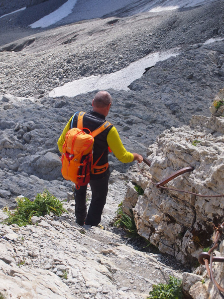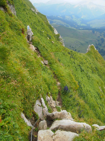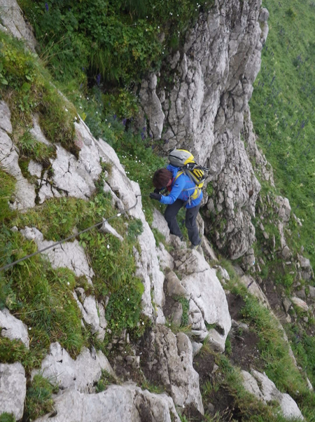 - Vorsicht bei Nässe aufgrund der Steilgraspassagen und den freien Kletterstellen